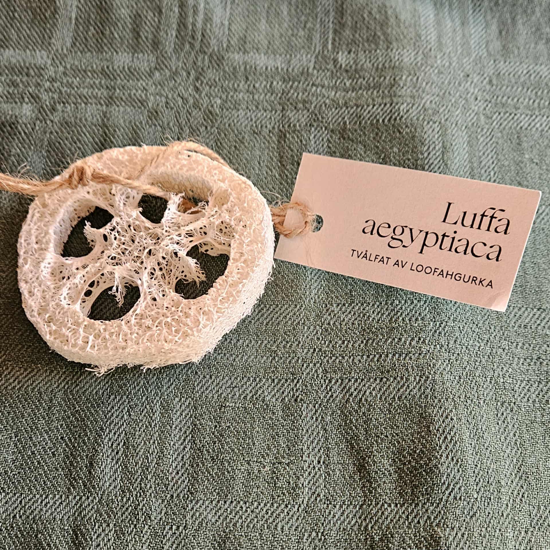 Loofahgurka Luffa aegyptica är en gurkväxt med nätliknande struktur som absorberar fukt väldigt bra. Använd som den är eller lägg mellan tvålen och tvålfatet som en absorberare. Loofahbiten torkar upp väldigt snabbt och är bara att skölja ur med jämna mellanrum.